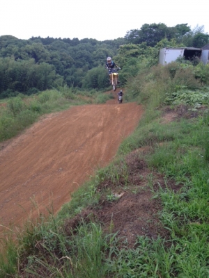 シャチョさんは、右足小さく4か所骨折、左肩脱臼して1ヵ月半でのライディング~で、家族からアキレラレルデ~デス。しかしながら、なかなかアグレッシブに走ってました。私も負けず劣らず頑張りましたよ~。チョコマカとむずかしい~。あ~キライです。モトクロスは好きですが、ここのコースダイスキ~ってゆうコースは一切ない僕です。