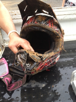 夕方アメがぽつぽつと降り出しまして、片づけて帰ろかな~って前にDJミヤモトが大クラッシュ!!ワタシ全然気づかずお話ばしとりました。イヤほんとね、ジェットヘルやったらアゴ全損ですよ。ほんと装備は大事です。