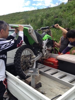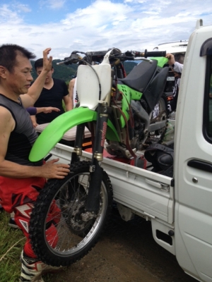 この日はハプニングな日でしたね、カクチライトピックアップ(通称軽虎)から逃げ出そうとしているKXみんなで抑えこんでました。買いたい時が買い替え時です。