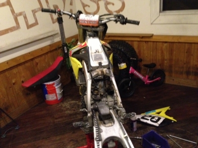 リアサスを外しまして~、オーバーホールでございます。状態は変じゃないけど、シラズシラスの内にね、性能が悪なるみたい。乗った分だけですね~。今年初めにサスが原因で痛い目あってますんで~。