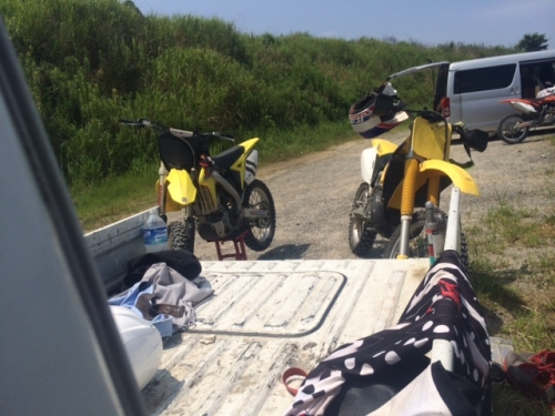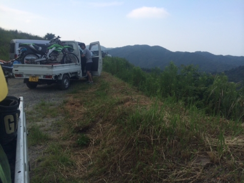 ヒサビサ載せてもらってきてるんで、服の下に着るガード忘れてきてしまいまして、大事に乗りました。二回ほどおコケになりましたが実力のウチです。暑いからボ~っとします。軽トラ日陰ありません。キビシイ!!