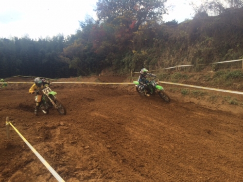 アキラを追え~!!みんなが追いかけます。最後は新旧対決(身内しかわかりません)でした。あっさりパスされてましたが、アッパレでした。最後にレース終わってパドックに帰る途中にコケたのはナゼカ人間味あふれるモノがありました。