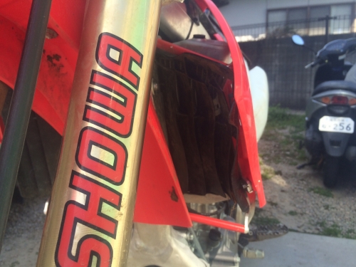 2時間半走った後に見た左側のラジエター。ほぼヒキました。そういえば、下りでフットンダナ~って思いだして、悲しくなりました。いつものボクがそこにいたわけで悲しくなりました。何もかわってないねん。