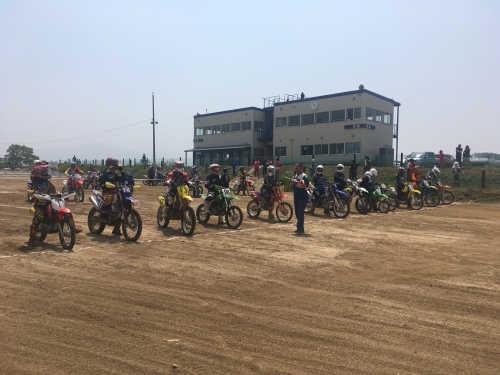 ケガせず楽しく走りましたね。ホールショットな13番さん。開けップリはナカナカなもんです。