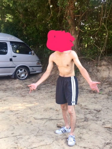 今から海に行くってゆう人の図。顔だしたらシバかれちゃう。顔ダシじゃないんでゆるしてね。海パンがダサイとかいっちゃダメ!海にはいれば脱ぐみたいですから。